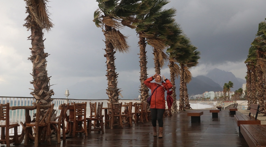 Antalya'da dün yapılan uyarıların ardından fırtına ve sağanak yapış sabah saatlerinden itibaren etkili olmaya başladı. Aralıklarla etkili olan sağanak yağış vatandaşlara zor anlar yaşattı. Saatteki hızı 73 kilometreye ulaşan fırtına da hayatı olumsuz etkiledi. Fırtınayla birlikte dünyaca ünlü Konyaaltı Sahili’nde dev dalgalar oluştu. Dalgalar falezleri ve sahili dövdü. Fırtına nedeniyle varyant seyir terası ve sahile çok az kişi geldi. Sabitlenmeyen çöp kovaları yerlerinden çıkarken, fırtınanın şiddeti palmiye ağaçlarına yansıdı. Güneşin kendini göstermesiyle oluşan gökkuşağı görsel şölen oluşturdu. Yürüyüşe çıkan bazı vatandaşlar ise şiddetli rüzgar nedeniyle güçlükle yürüdü. Fotoğraf çekmek isteyen bir aile de rüzgar karşısında zor anlar yaşadı. Anne ve çocuğu demire tutunurken, baba güçlükle fotoğraf çekimi yaptı.