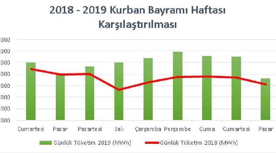 AEDAŞ’ın raporunda 10-18 Ağustos tarihleri arasında Kurban Bayramı olmasaydı tüketimin ne kadar olacağı tahmini de yapıldı. 2019 yılı mevcut Ağustos dönemi Akdeniz ortalama sıcaklıkları göz önünde bulundurulduğunda 10-18 Ağustos tarihleri arasında toplam tahmini tüketim 358 bin 182 MWh olarak öngörüldü. Bayram nedeniyle bölgedeki sanayi ve ticarethane tesislerinin durması, Burdur ve Isparta’daki tüketim düşüşlerinin de etkisi ile rakam 341bin 375 MWh seviyesinde gerçekleşti. 9 günlük periyodda Antalya, Isparta ve Burdur’da Kurban Bayramı’nın etkisinin yaklaşık yüzde 5 olduğu görüldü.