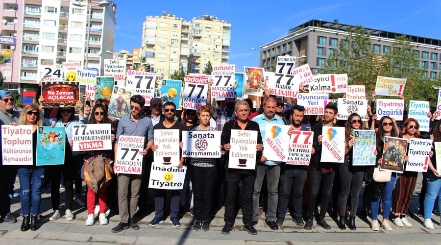 Antalya Büyükşehir Belediyesince sözleşmeleri feshedilen 48 tiyatro sanatçısı ve Antalya Şehir Tiyatrosu (AŞT) Seyirci Platformu üyeleri, işten çıkartmalara tepki gösterdi.