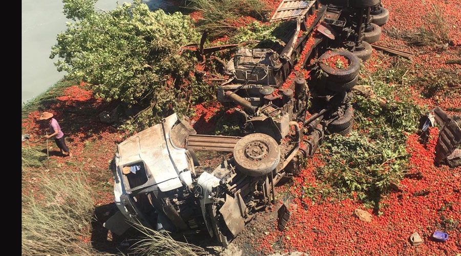 Domates yüklü TIR devrildi, şoför öldü