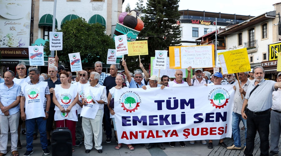 EMEKLİ maaşlarına yapılan zammı yetersiz bulan Tüm Emekli Sen üyeleri Antalya'da protesto etti.