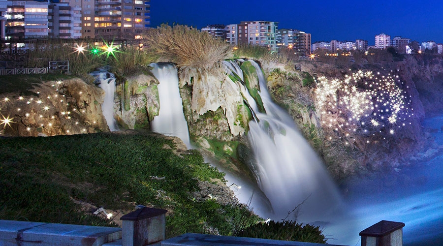 Antalya Büyükşehir Belediyesi, 29 Haziran'da İtalya'da gerçekleştirilecek törenle ödülü alacak. Düden Şelalesi, aydınlatma tasarımıyla görenleri hayran bırakırken, görüntüsüyle gelinliğe bürünmüş gelin gibi görünüyor. Çevresindeki 5 bin metrekarelik görkemli kayalığın detayları ise ateş böceğini andıran armatürlerle ortaya çıkarılıyor. Güneş ışığıyla aydınlanan Düden Şelalesi, doğal güzelliği, tasarımı, uygulaması ve gece de aynı görkemiyle ziyaretçilerin ilgi odağı oluyor. 72 LED'li, her biri açılandırılabilen özel tasarım projektörlerle aydınlatılan Düden Şelalesi, uçakların iniş rotasında olması dolayısıyla gece tüm görkemiyle Antalya'ya gelen yolcuları karşılıyor. Denizden ve karadan görülebilen şelalenin aydınlanmasında çevreye duyarlılık ve estetik ön planda tutuluyor.