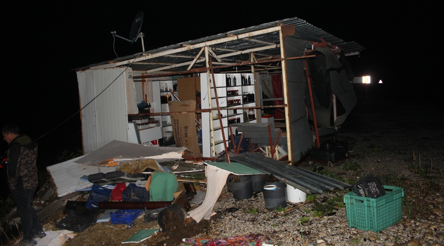 Tekandız mevkiinde bulunan düğün salonu ve çevresindeki tesisler hortumdan nasibini aldı. Düğün salonu ve bitişiğindeki meşrubat deposunun çatısı dev bloklar halinde yüzlerce metre ileriye savrulurken, tesislerin yakınında bulunan tarla saç ve profil demirleriyle doldu. En büyük zarar ise yol kenarında bulunan söve fabrikasında yaşandı. Profil ve sac olan dev tesis hortumun ardından tamamen çökerken, çatısında bulunan sac ve profiller yüzlerce metre uzağa gitti.
