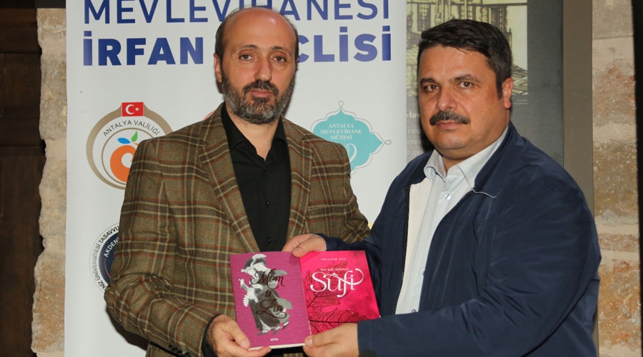 Bugüne kadar sekiz kitap ve çok sayıda bilimsel çalışmaya imza atan Doç. Dr. İbrahim Baz, söyleşisinin sonunda en son yayınladığı Sûfi ve Mem ü Zin adlı kitaplarını Akdeniz Üniversitesi Tasavvuf Araştırmaları Merkezi Müdürü Prof. Dr. Ahmet Ögke’ye takdim ederken Antalya Mevlevîhânesi İrfan Meclisi etkinliklerine destek veren başta Antalya Valiliği ve Konya Büyükşehir Belediyesi olmak üzere bütün kurum ve gönüldaşlara teşekkür etti.