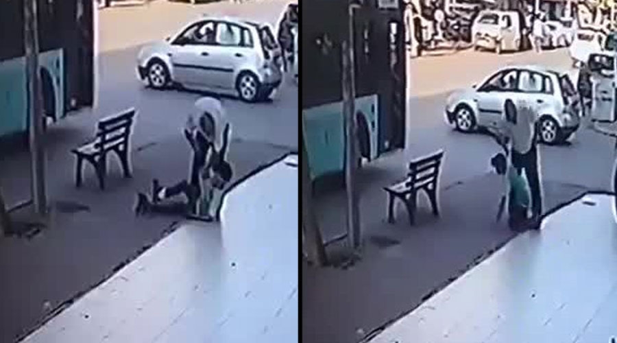 Görüntülerde otobüsün beklemeye başlaması, çocukların gelmesi ve şoförün çocuklardan 1'ine saldırması yansıyor. Çocuğun yere yatıran şoförün yumruk atması ve çevre esnafın da araya girmesi anbean görüntülere yansıdı.